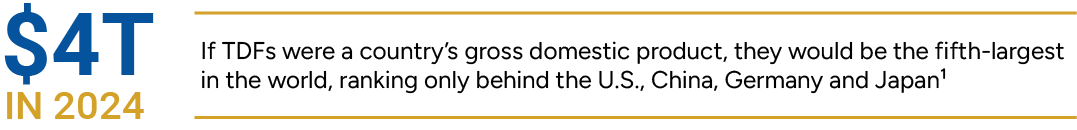 TDFs reached a record $4 trillion in assets in 2024, and their role as a qualified default investment alternative (QDIA) makes them central to participant outcomes.1 While TDFs provide a simple and appealing way for retirement plan participants to save and reach retirement goals, they are complex vehicles that demand deeper due diligence than standard investment options. Glide paths, asset allocation and underlying fund composition can vary widely — and these differences matter.
